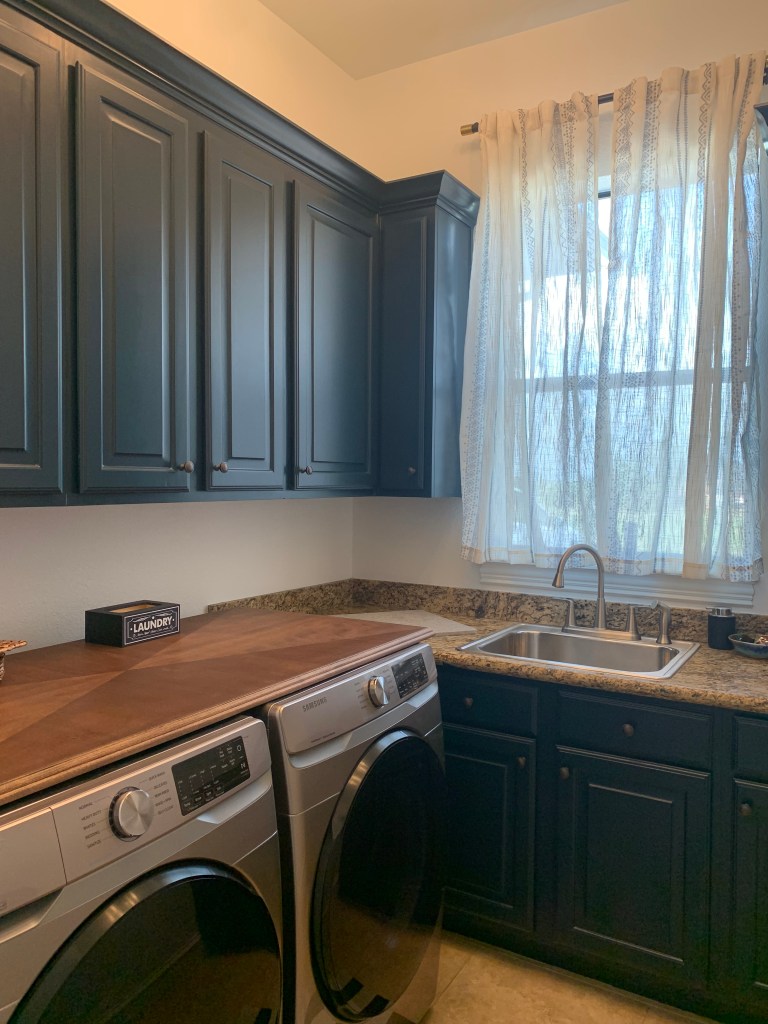 So laundry continues to be my not-so-favorite chore, but having a clean, flat space for folding and bright lighting makes it a manageable chore. And having an attractive room invites me into the space. If I’ve got to be there anyways, it should be a pleasant experience – not a pox!